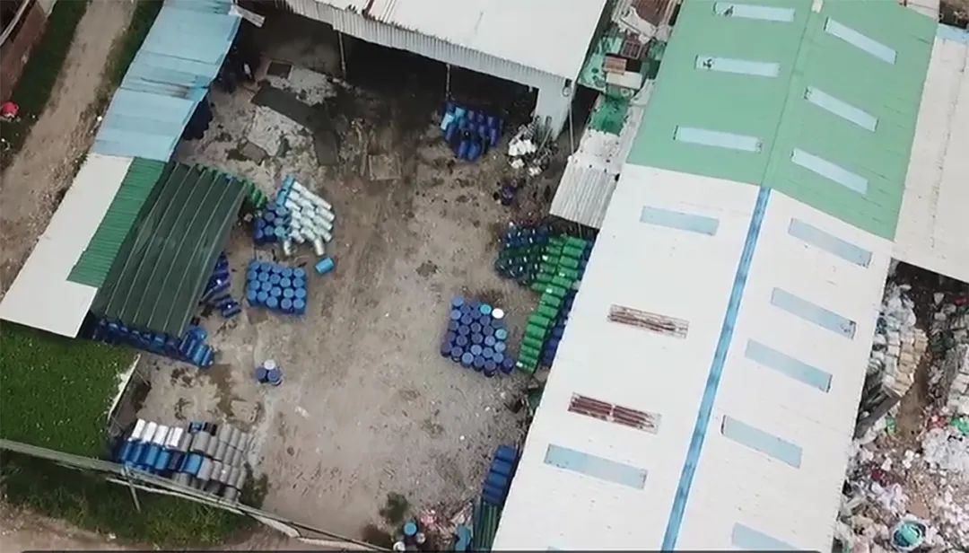 8月10日,厚街生態(tài)環(huán)境分局根據(jù)前期摸排情況,組織執(zhí)法人員到該廠房突擊檢查。當時,該廠房大門緊閉,但通過廠房門上兩個打開的鎖口可看到里面有人且堆放大量鐵桶。執(zhí)法人員多次敲門得不到回應,隨后利用無人機對該廠房的內(nèi)部環(huán)境進行探查,并通過大門縫隙攀爬進入廠房。