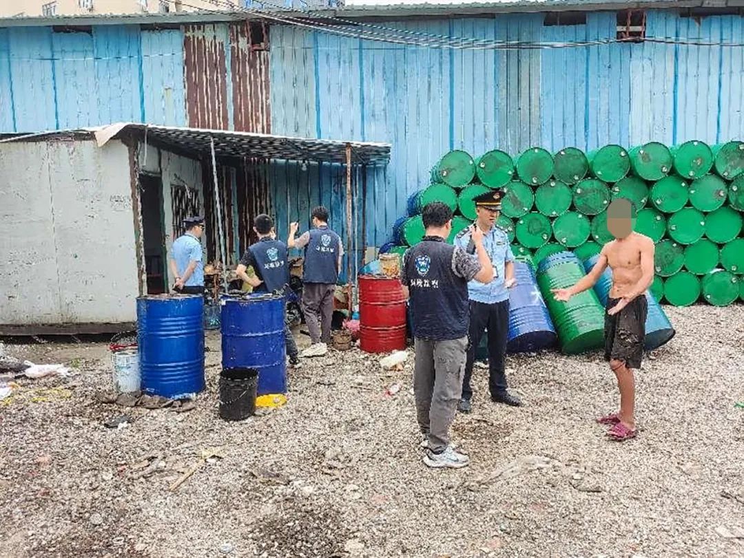 經(jīng)現(xiàn)場檢查,該廠未能提供營業(yè)執(zhí)照,主要從事廢舊鐵桶回收,設有氣泵抽液體、靜置滴漏、手工擦洗、切割、壓片等生產(chǎn)工序和擦洗膠桶、切割機、壓片機、整型機、氣泵等生產(chǎn)設備。廠房內(nèi)有15個裝有不明液體的鐵桶和11個裝有清水的鐵桶,執(zhí)法人員現(xiàn)場委托有資質(zhì)的第三方檢測機構(gòu)對不明液體進行取樣檢測,并對該廠作雙筆錄,依法查封裝有不明液體的鐵桶。執(zhí)法人員將持續(xù)跟進此案件,待監(jiān)測結(jié)果出具后,若涉嫌刑事犯罪,將移送公安機關(guān)作進一步處理。