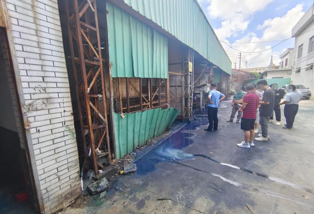 與此同時,經溯源排查,執(zhí)法人員發(fā)現(xiàn)異常水體源頭是一紙箱印刷企業(yè)。經現(xiàn)場檢查,該企業(yè)廠房內的生產設備已于今年7月搬空,剩余廢水處理站未拆除也未運行。經調取該企業(yè)廢水處理站的視頻監(jiān)控確認,企業(yè)在9月16日16時清理廢水處理站內存放的油墨罐,部分油墨罐內殘留的油墨在搬運和裝車過程中流至地面,經雨水沖刷后流入雨水管網,最終流入龍眼坑水。