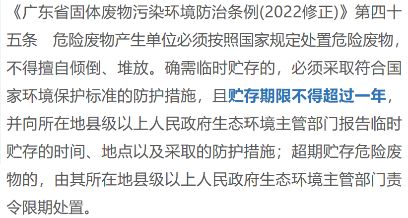 關(guān)于危廢產(chǎn)生單位的危廢貯存時限問題的咨詢